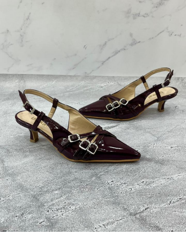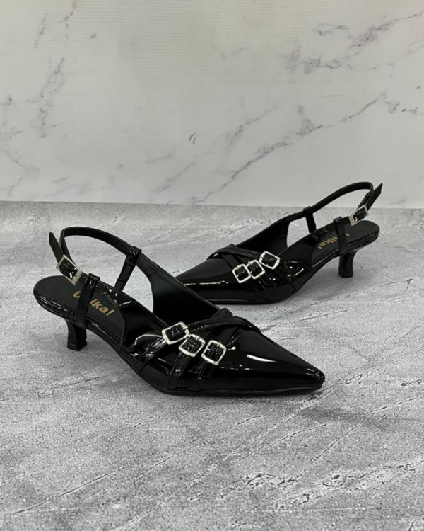 Stileto taco fino de 4 cm realizado en charol vegano